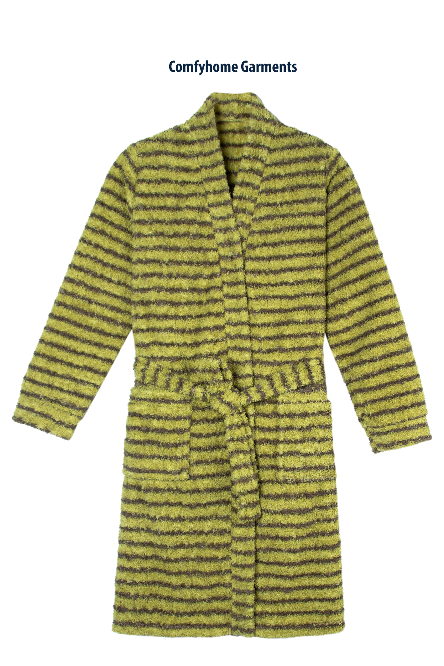 Comfyhome Women’s Green Stripe Premium Fleece Kimono Robe, Ultra Soft Winter Lounge Bathrobe with Waist Tie and Pockets